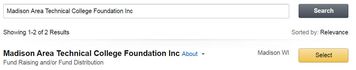 - To create your AmazonSmile account and designate Madison Area Technical College Foundation Inc as your charity of choice, visit smile.amazon.com, sign in and follow the prompts to select Madison Area Technical College Foundation Inc as your charity of choice.